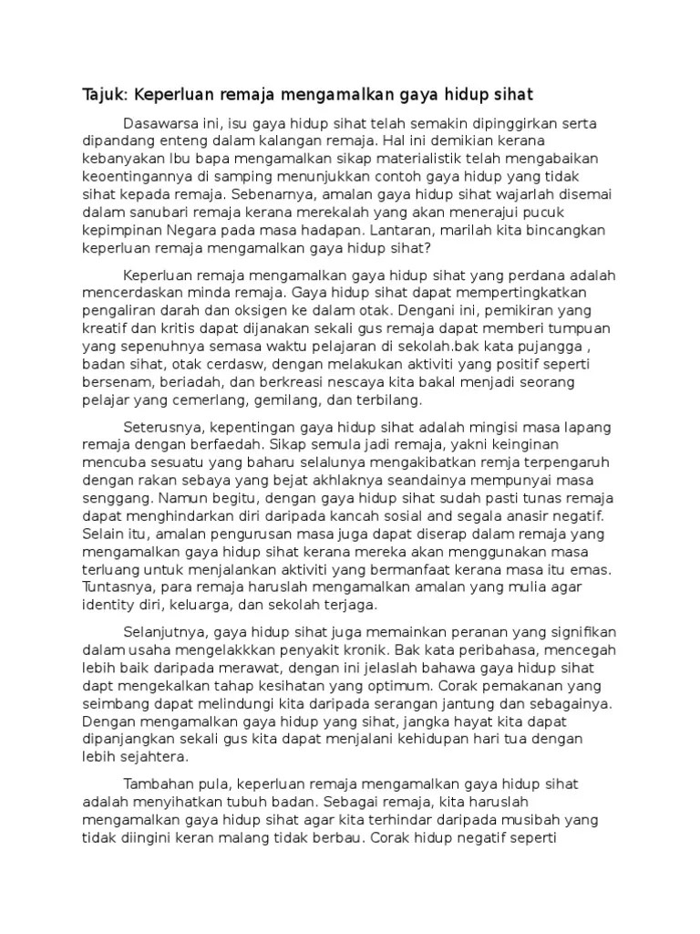 Mengambil makanan yang seimbang · bersukan atau beriadah · melakukan pemeriksaan kesihatan secara berkala · menjauhi gaya hidup yang negatif · penutup karangan gaya .